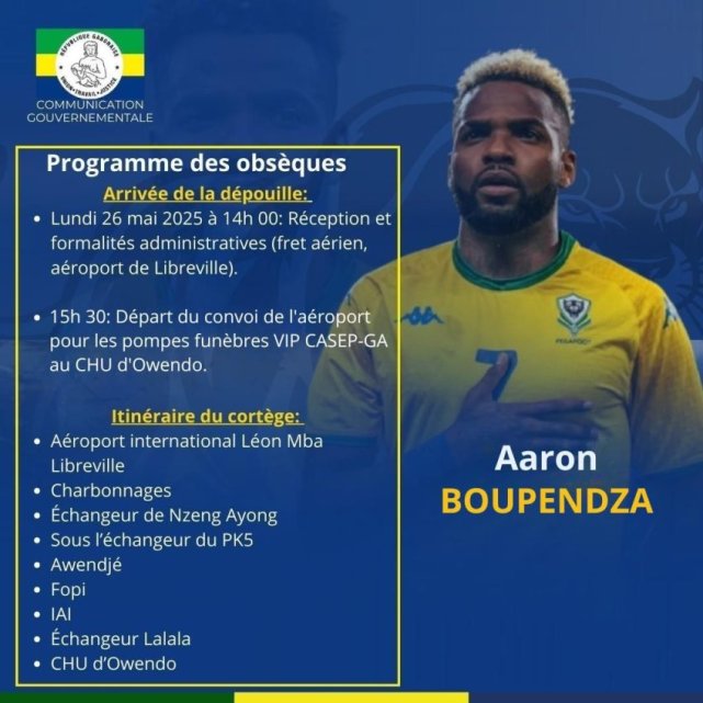 Un mois après sa tragique disparition en Chine, le corps de l’international gabonais Aaron Boupendza rentre au pays ce lundi 26 mai. La douleur est vive, les hommages à venir.
