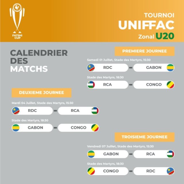 Pour la première journée, le Gabon rentrera en lice dans la rencontre inaugurale face au pays hôte, puis recevra les congolais de Brazzaville 4 jours plus tard. Enfin affrontera les centrafricains le vendredi 7 juillet 2023 à 15h30 lors de la troisième journée. Rappelons que toutes ces rencontres se déroulerons au stade de Martyrs de Kinshasa.